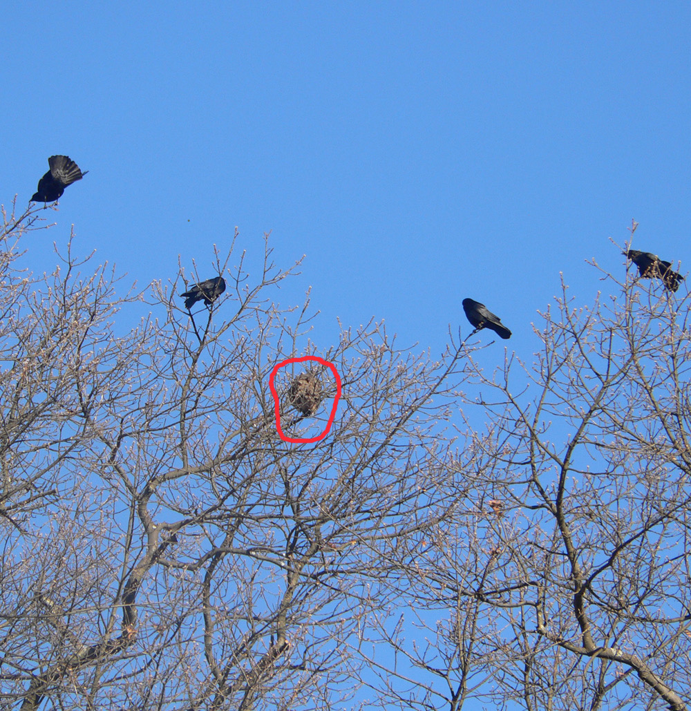 On the day after Christmas in 2008, I got an email from a birding friend reporting that a Great Horned Owl was sitting out in the open in a large oak near the beech collection off Valley Road. It was being attacked by several crows but refused to move; my friend suspected it was injured. I went to the site and found the birds:
