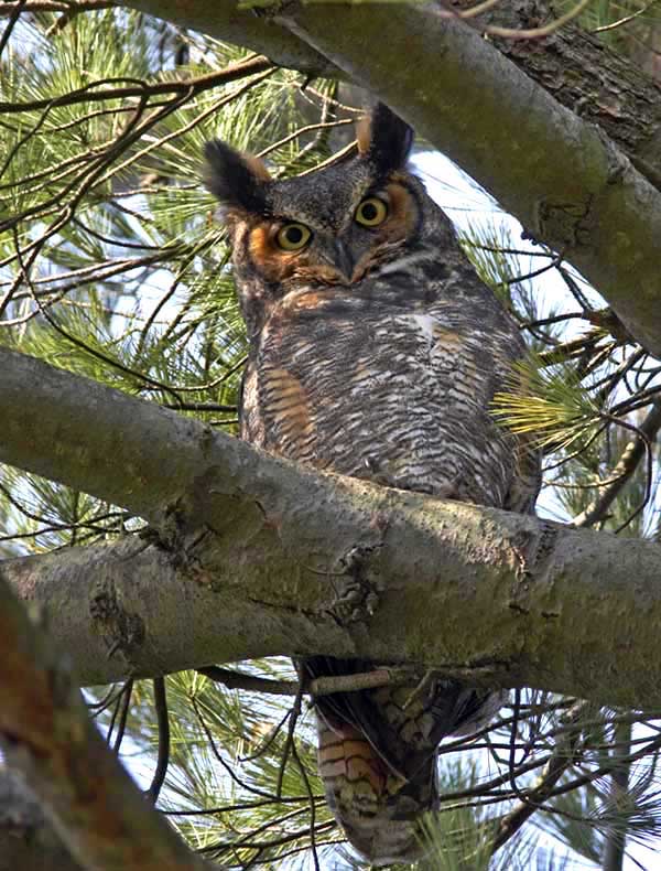 Next up on the size scale, but less frequently seen, is the Great Horned Owl: