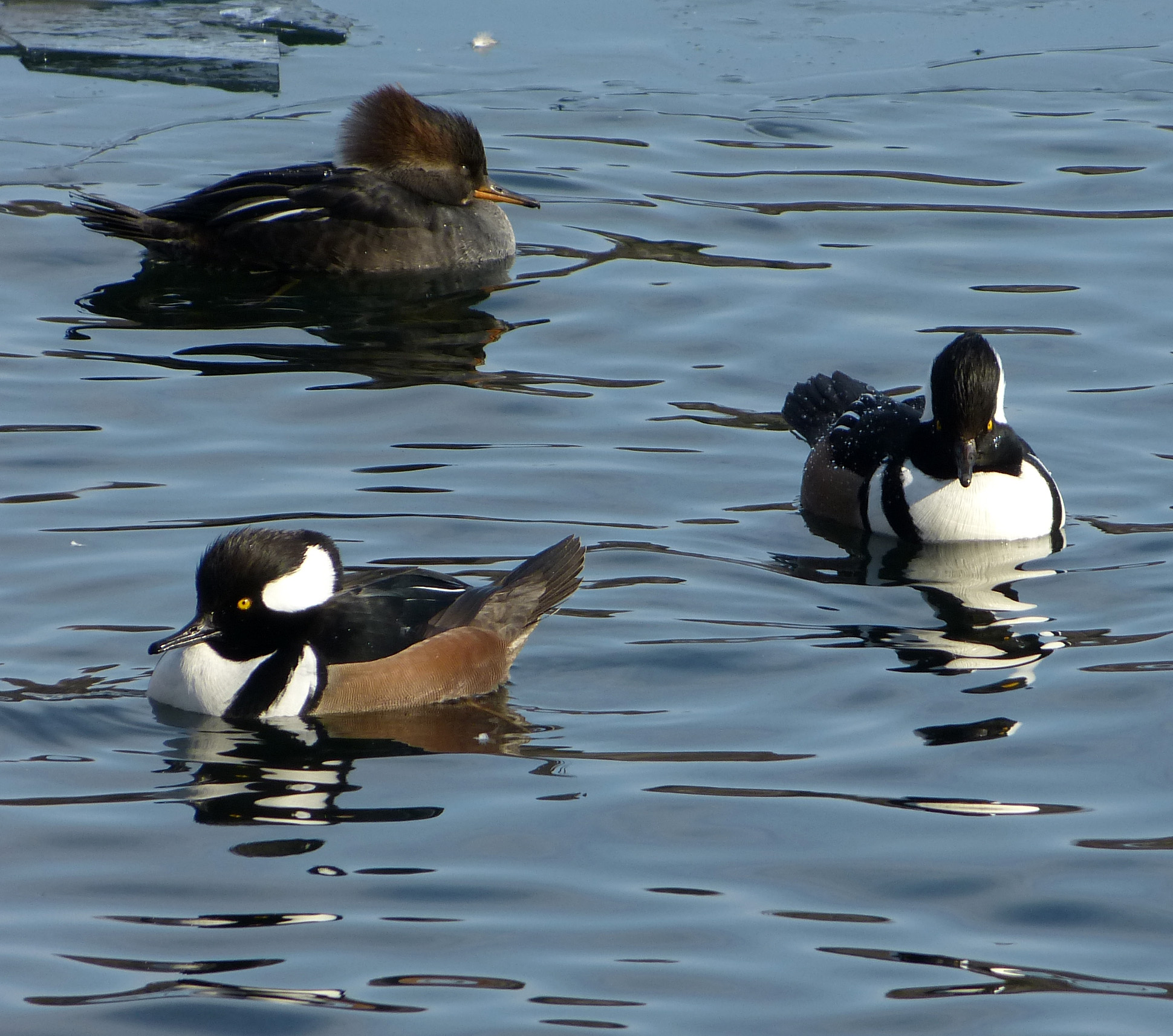 Two male Hooded Mergansers and a female above them. Photo: Bob Mayer