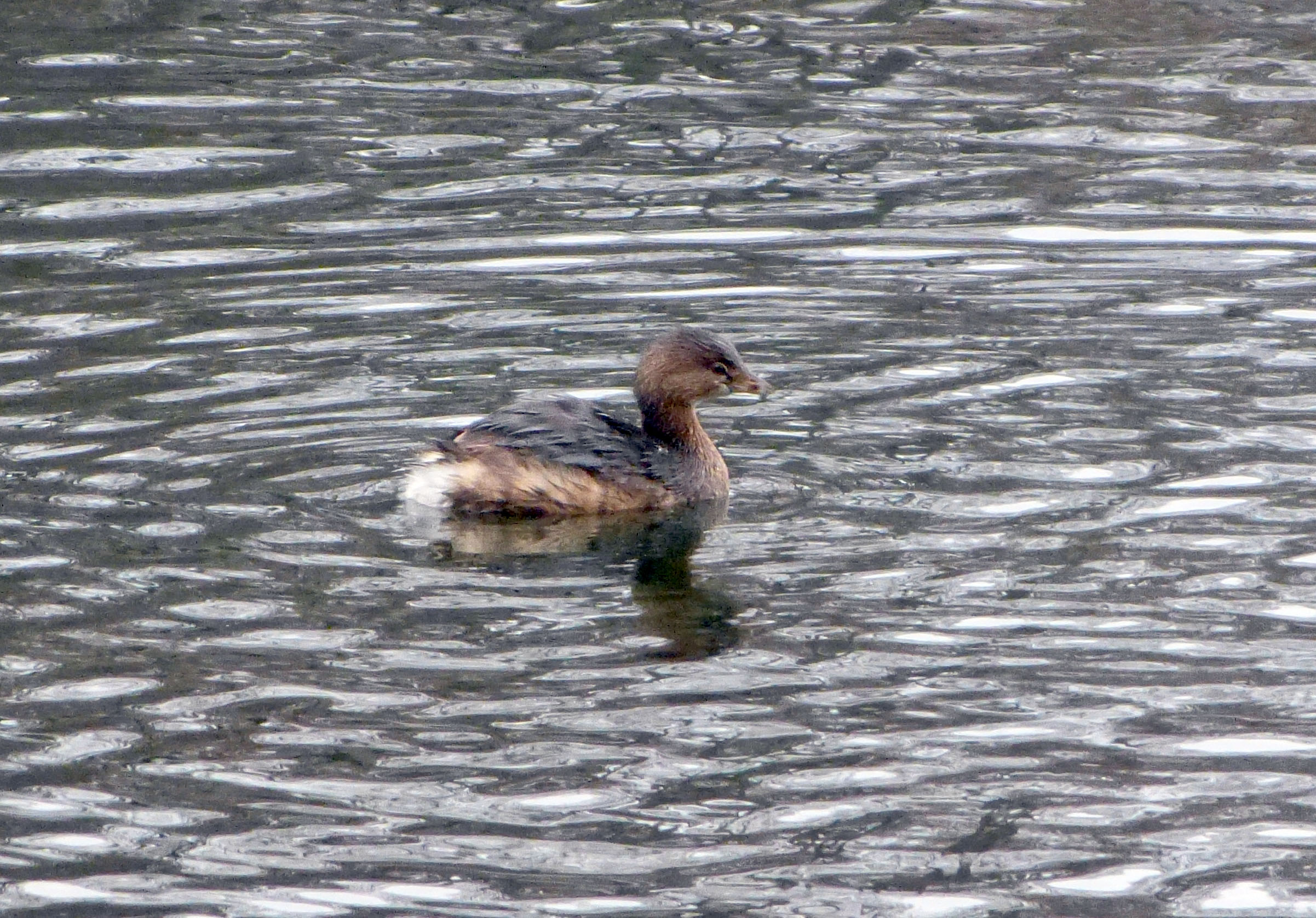Pied-billed Grebe. At less than a foot in length, this is the smallest waterfowl on the pond. Some members of the Grebe family perform elaborate dances at their breeding grounds in Western North America. Photo: Bob Mayer