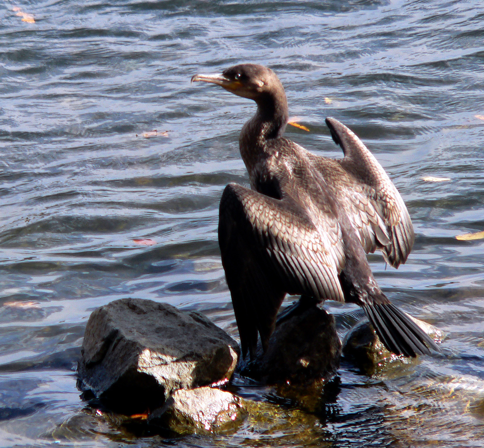 Double-Crested Cormorant. These birds often hold this position, thought to be for drying out their feathers which are less waterproof than most waterfowl. Photo: Bob Mayer