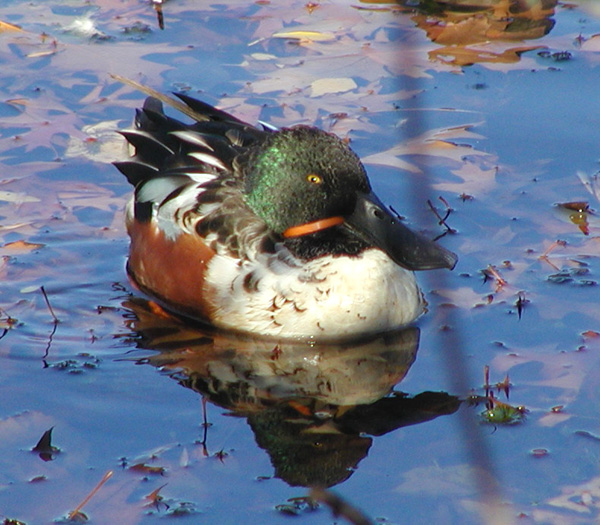 Northern Shoveler, male. This was one of three on the pond in late November 2012. Photo: Bob Mayer