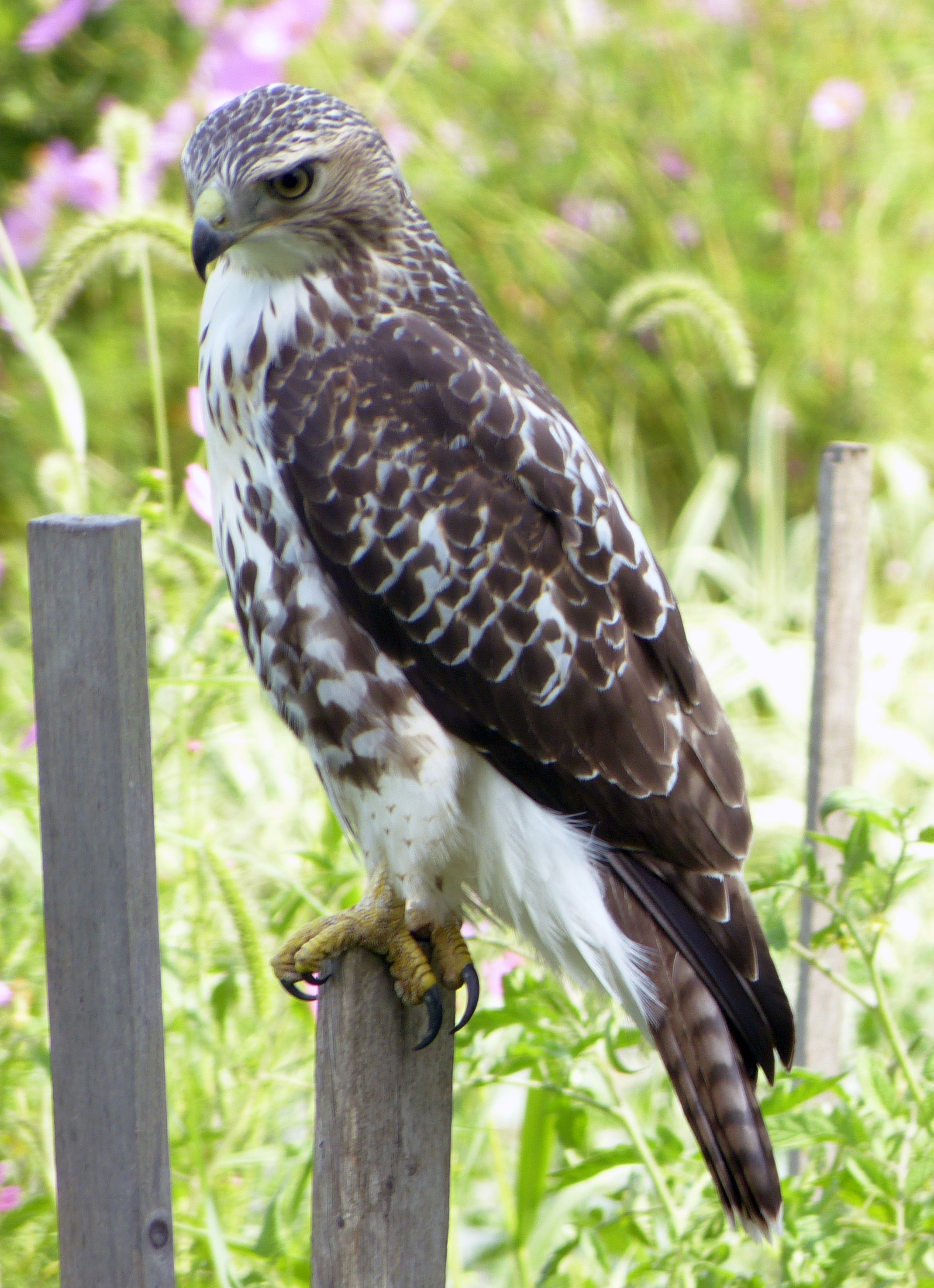 This immature Red-Tailed Hawk was photographed recently stalking my bird feeders. They prefer a mammalian diet but are not above a bird snack in the harsh winter months. Photo: Bob Mayer