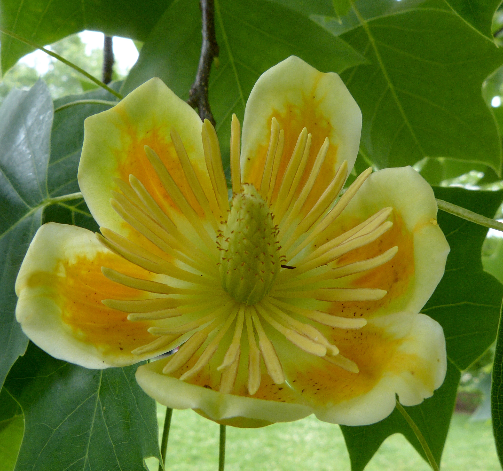 On Saturday morning I led the last of five spring bird walks at the Arnold Arboretum; 46 people showed up to get a glimpse of the tail end of the migration and enjoy the beautiful weather and some spectacular trees. I began the walk with my docent hat on; discussing the Tuliptree in full bloom in front of the main gate. What a lovely flower this Asian x American cross was displaying:
