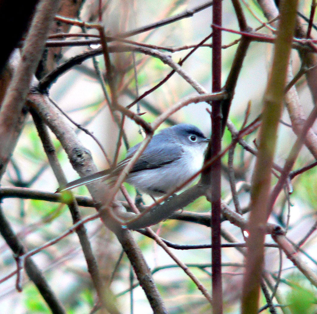 The field marks for the Blue-gray Gnatcatcher are it’s relatively long tail and distinct eye ring. As it’s name suggests, it flits about catching tiny bugs.
