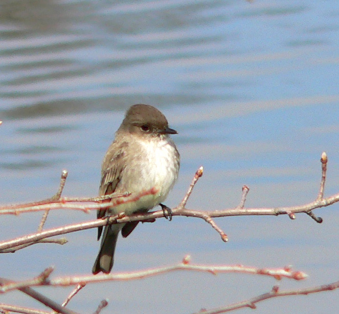 The Eastern Phoebe is a very early migrant. Smaller than the Eastern Kingbird, it has a habit of bobbing it’s tail, a good field mark.