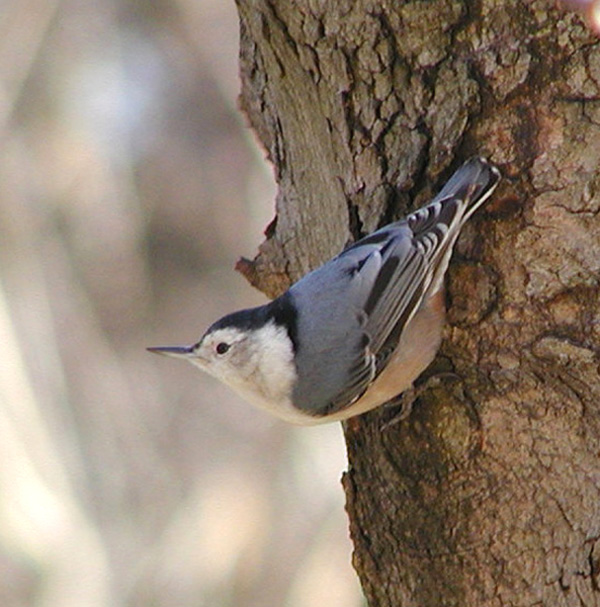 After admiring a few more Northern Cardinals, the new college graduates saw a White-breasted Nuthatch in a big oak on the street. Regrettably, it flew before others could see it; here is what it would have been:
