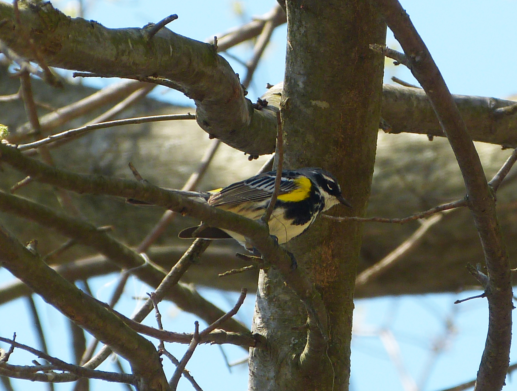 There was a lot of familiar bird call as we began the walk; Song Sparrows, jays, cardinals, robins and Baltimore Orioles. But the birds were hard to locate at first. When we returned to the main Blackwell Path we spotted the first of only two warbler species we had on the walk; Yellow-rumped Warbler.