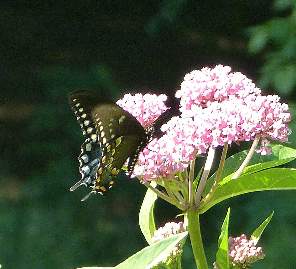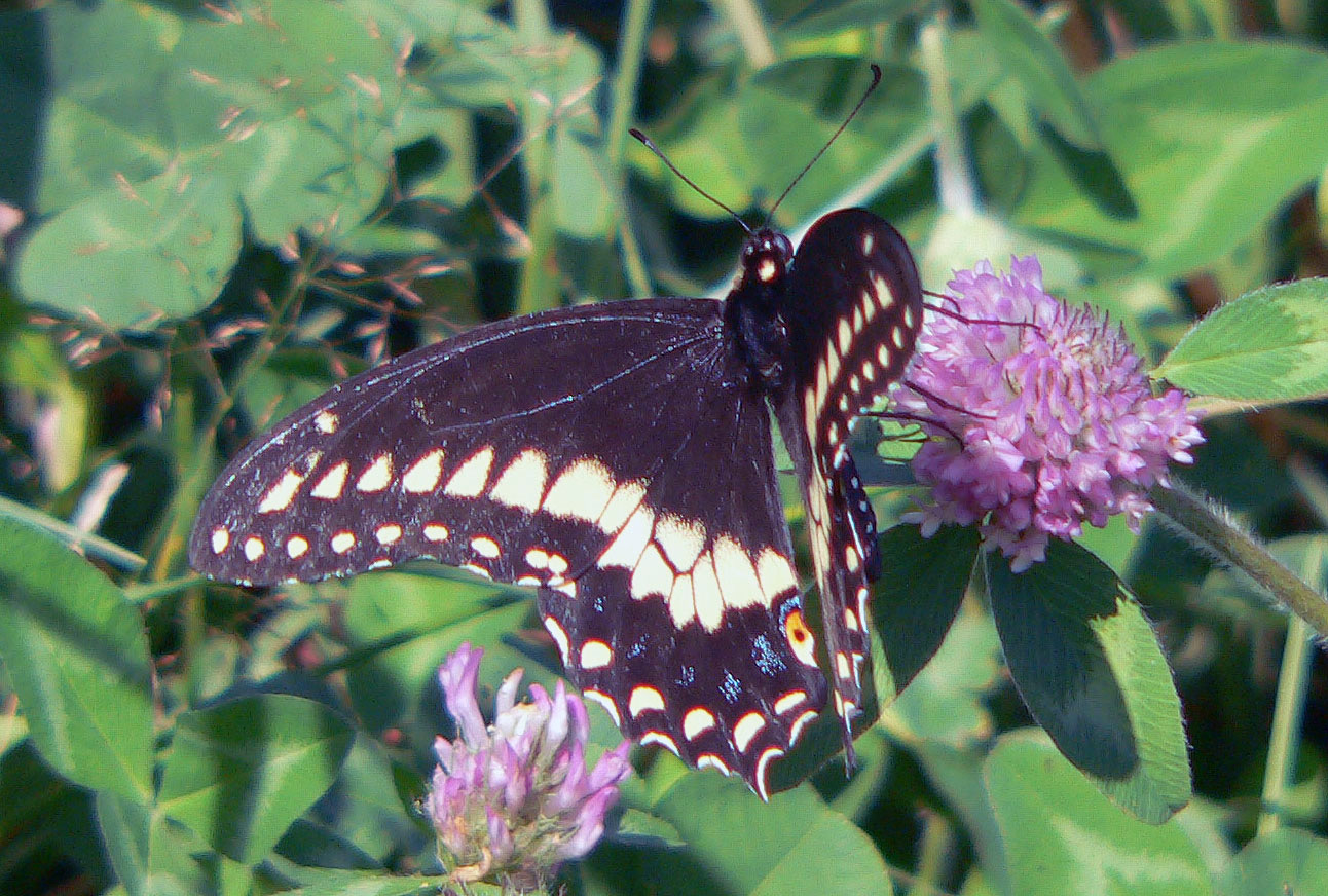 It can be tricky to distinguish that predominantly black butterfly from the named Black Swallowtail: