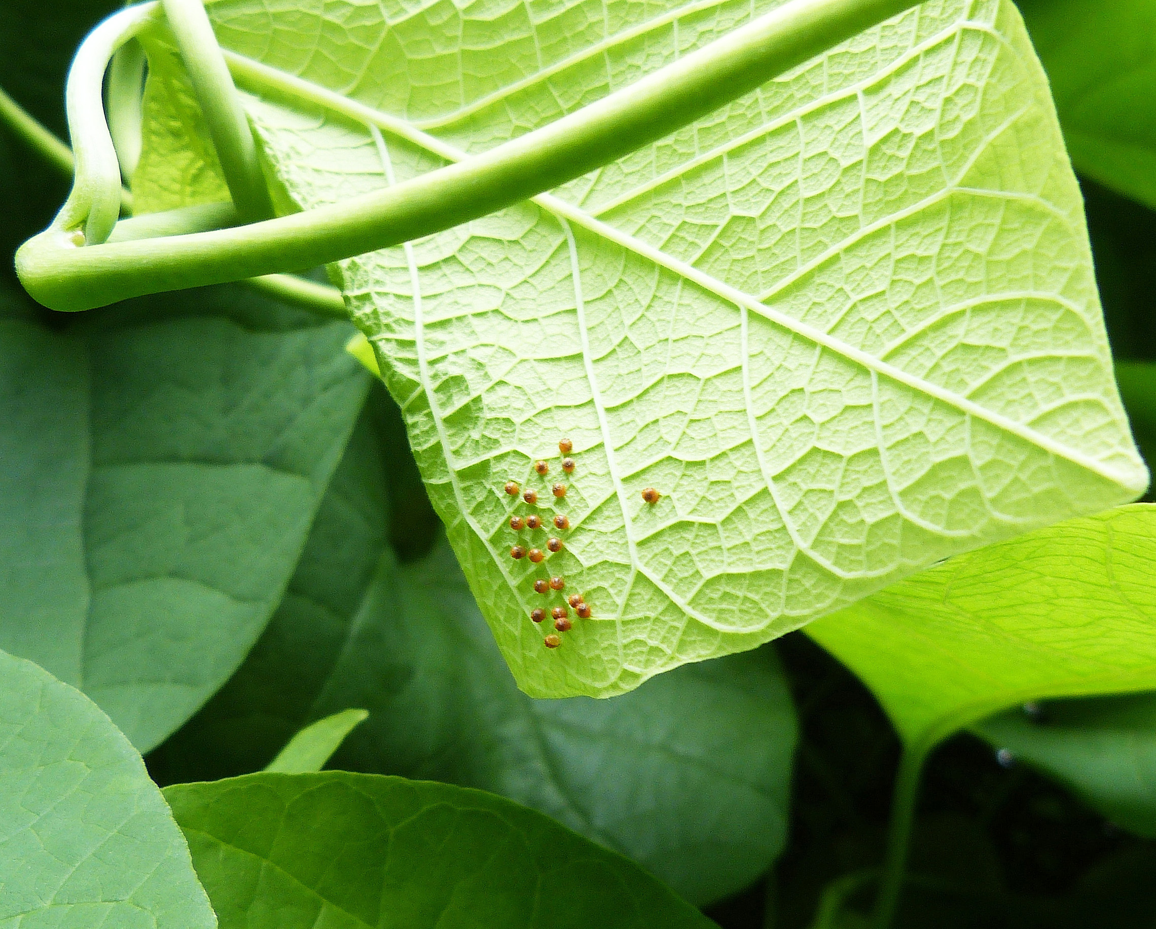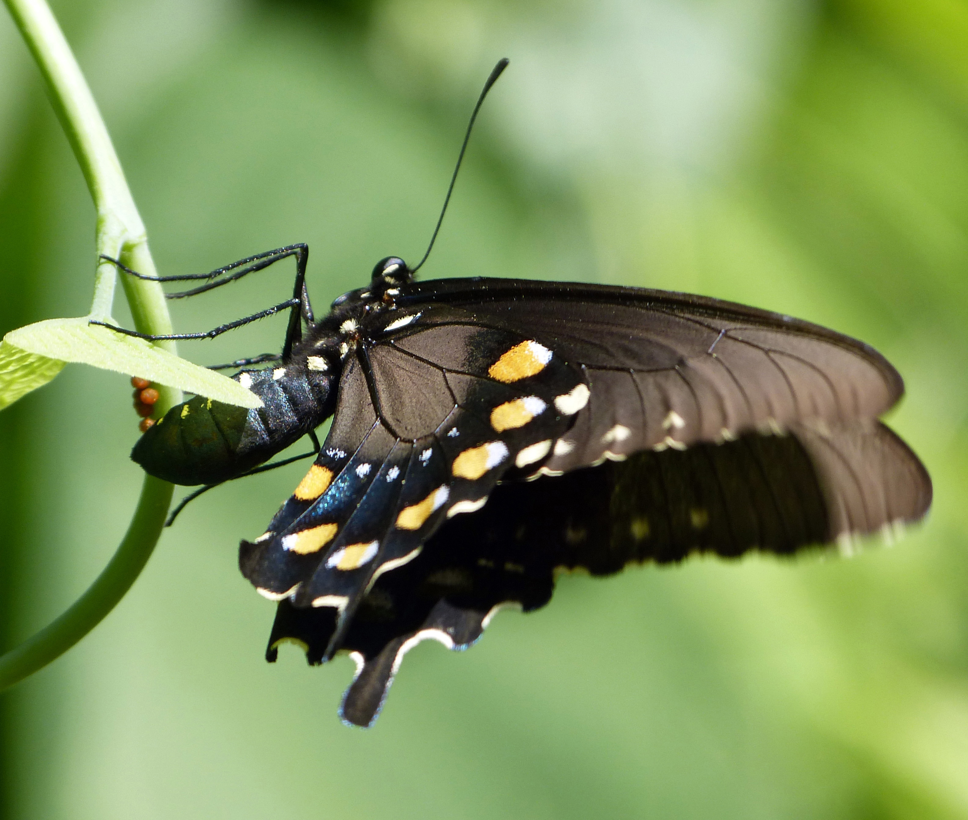 Female Pipevine Swallowtail, ovipositing on Dutchman’s Pipe