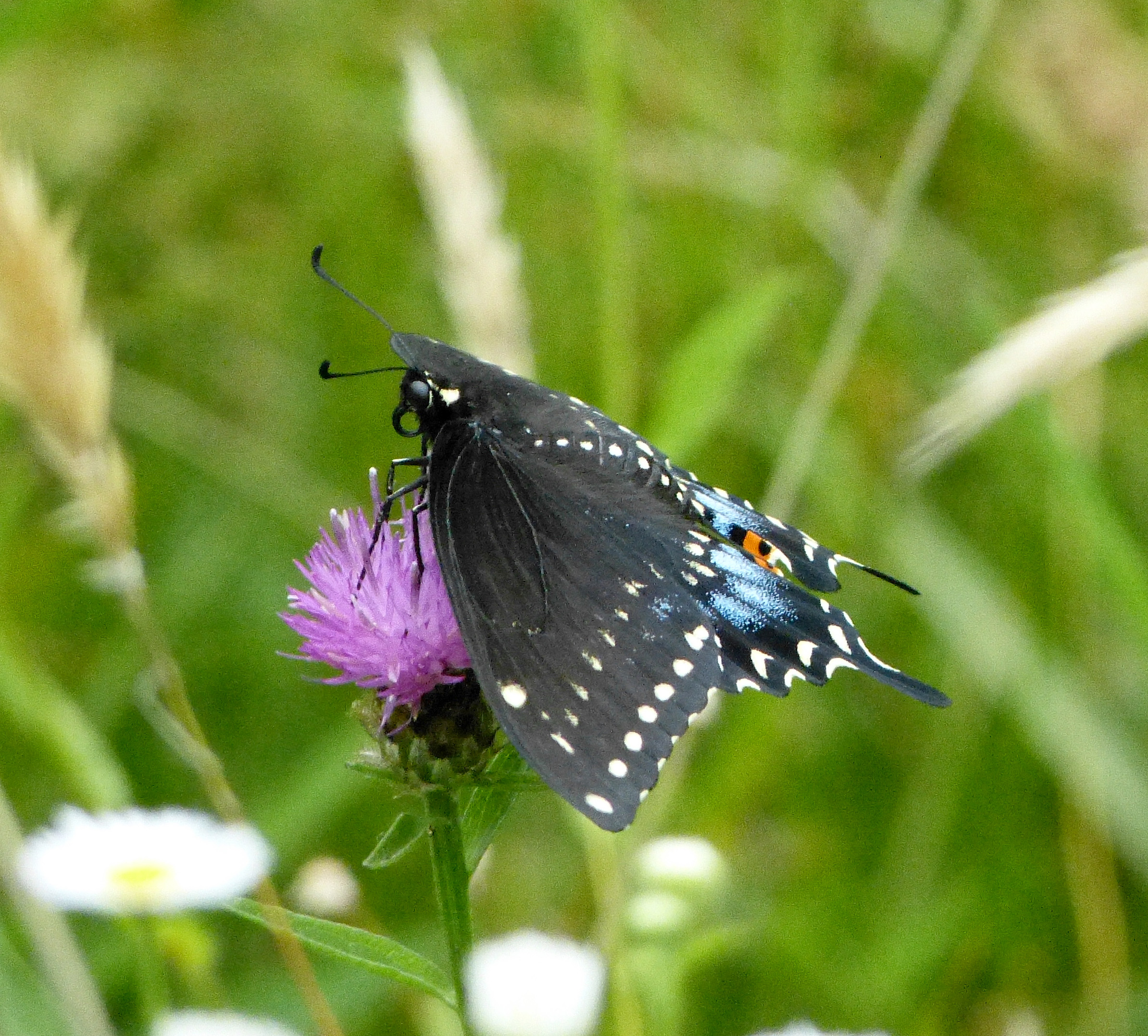 There are two other relatively common swallowtail species in the area; one is the Spicebush Swallowtail: