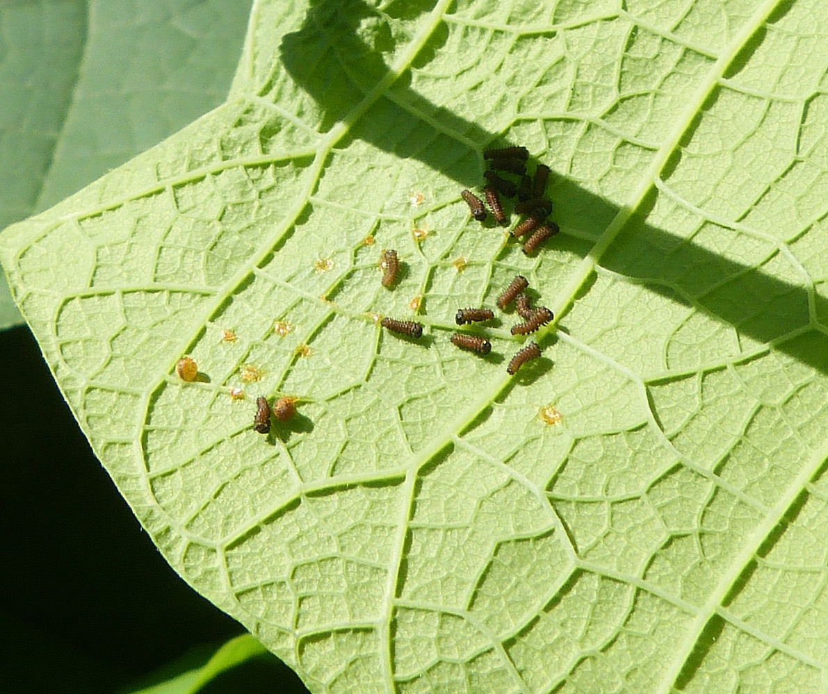So this was now the third sighting of this swallowtail in Suffolk County? And as if that wasn’t enough, the next day I received word that two seasoned horticulturalists on the AA staff had discovered Pipevine Swallowtail caterpillars on the same vines near the garage back in 2010, and had even over-wintered one which emerged from it’s chrysalis the following spring! They have found one or more as caterpillars almost every year since then. But they record stuff in botanical journals.