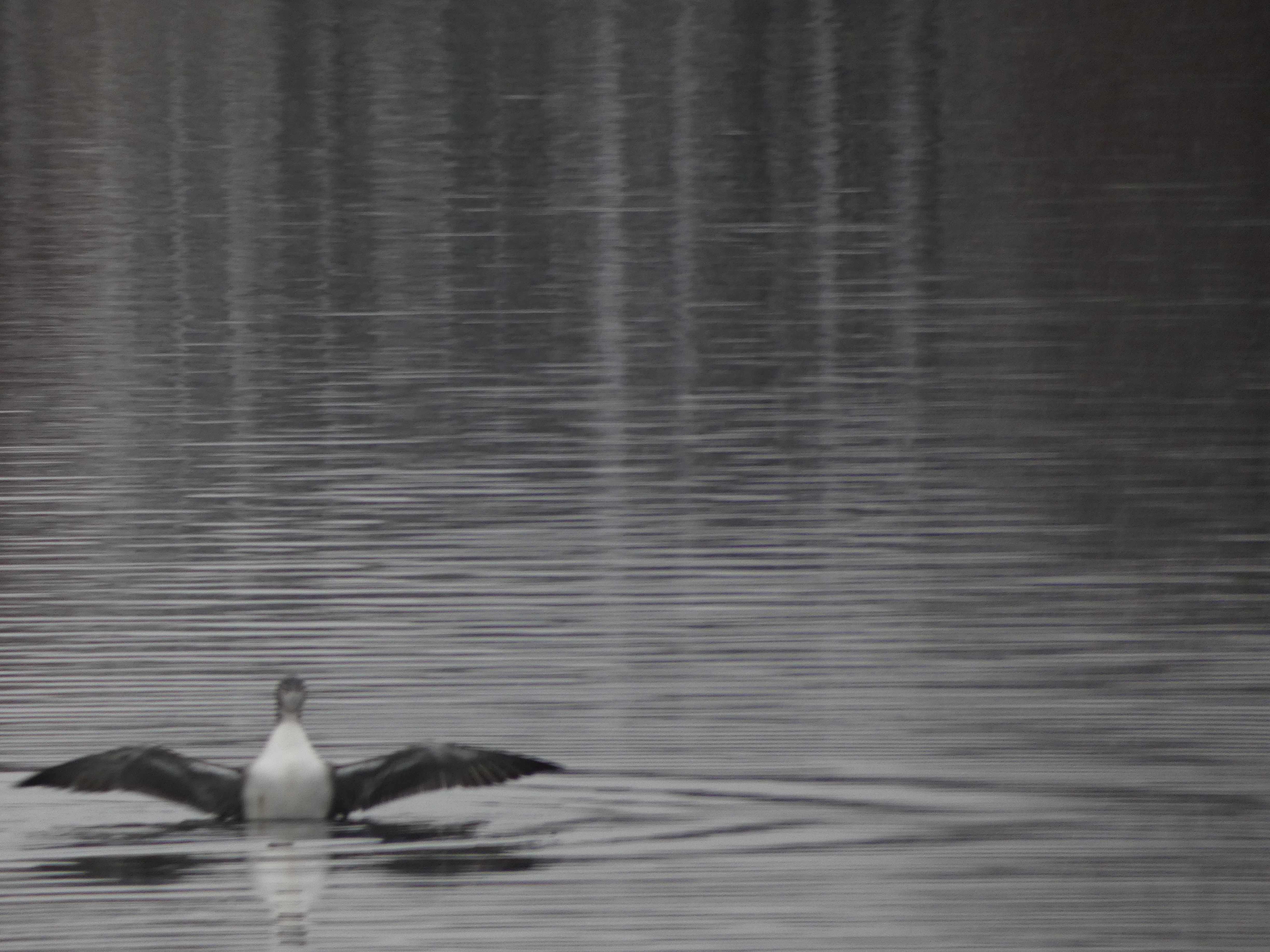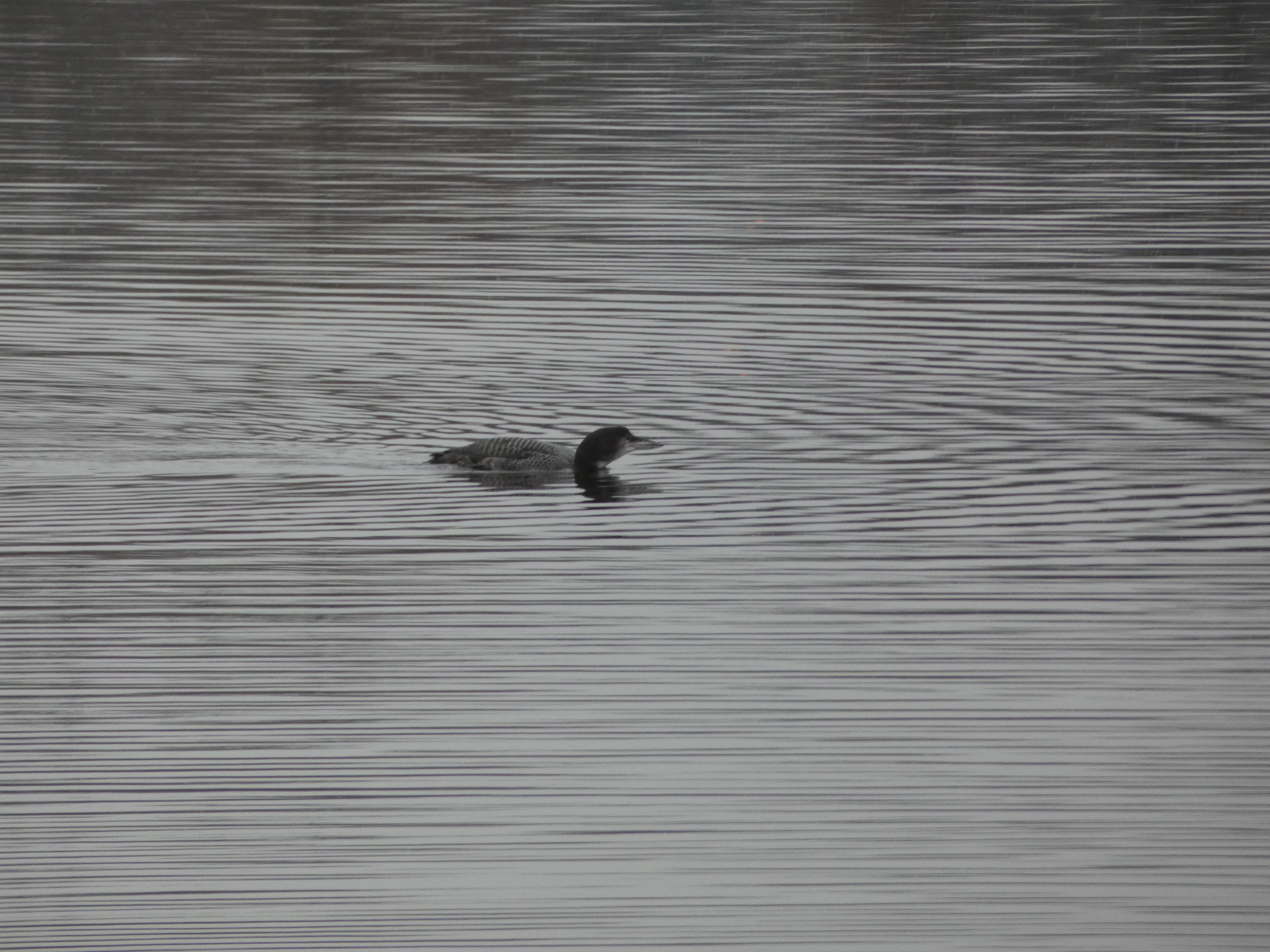 You can barely see the striped pattern and the large bill in this distant image of a Common Loon.