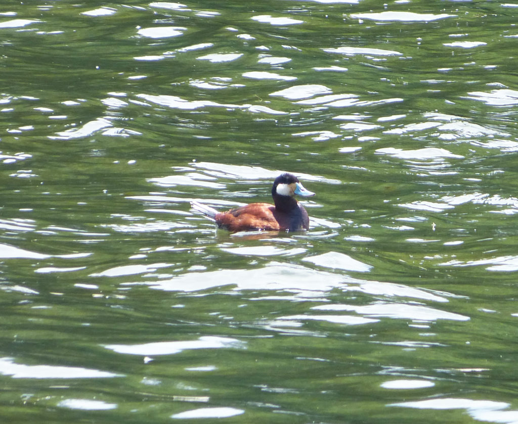 Male Ruddy Duck in breeding plumage, showing why they are called “ruddy” and also displaying it’s “cartoonishly bold, sky-blue bill“