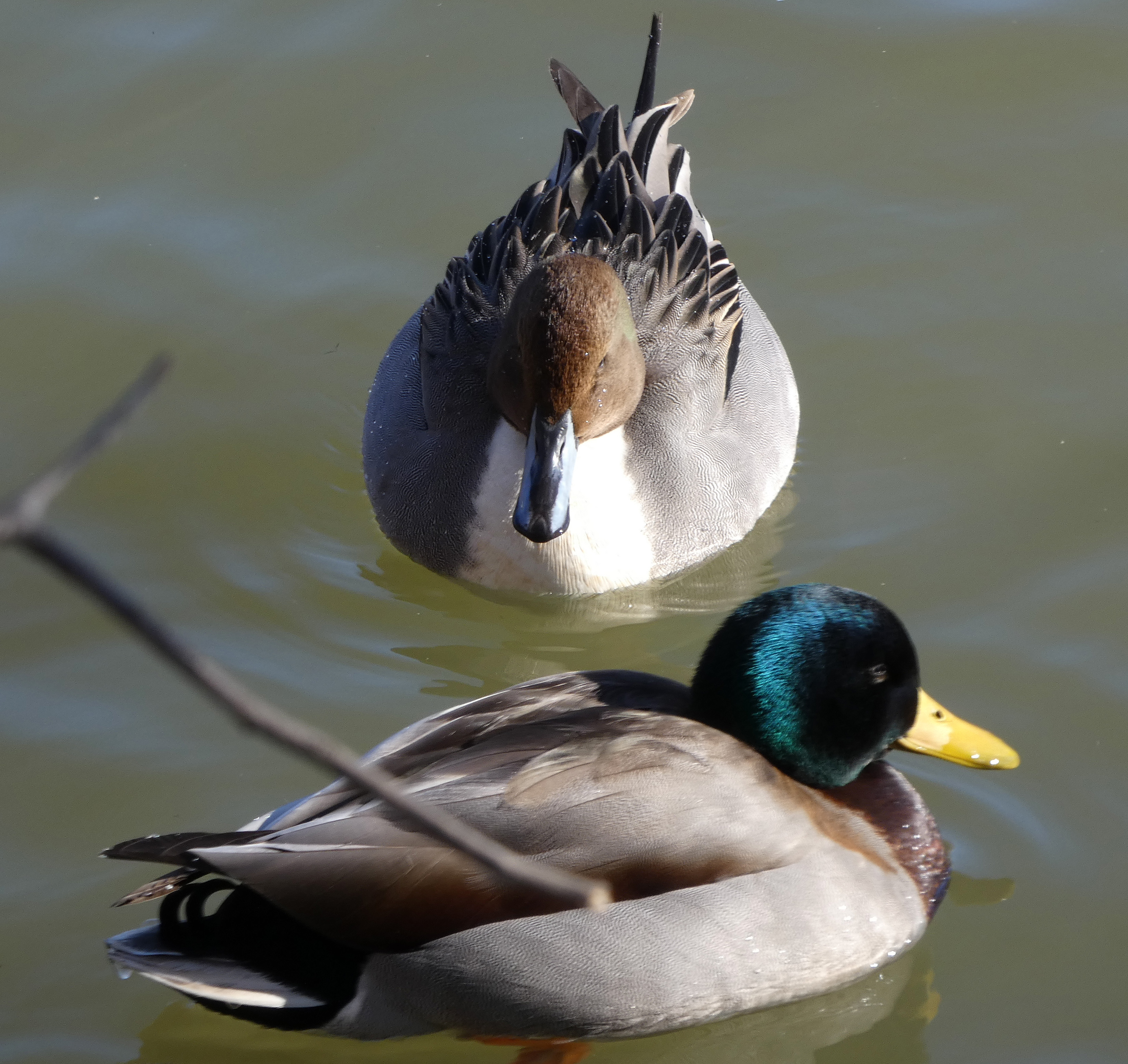 Another image of the pintail, above a common but lovely male Mallard.