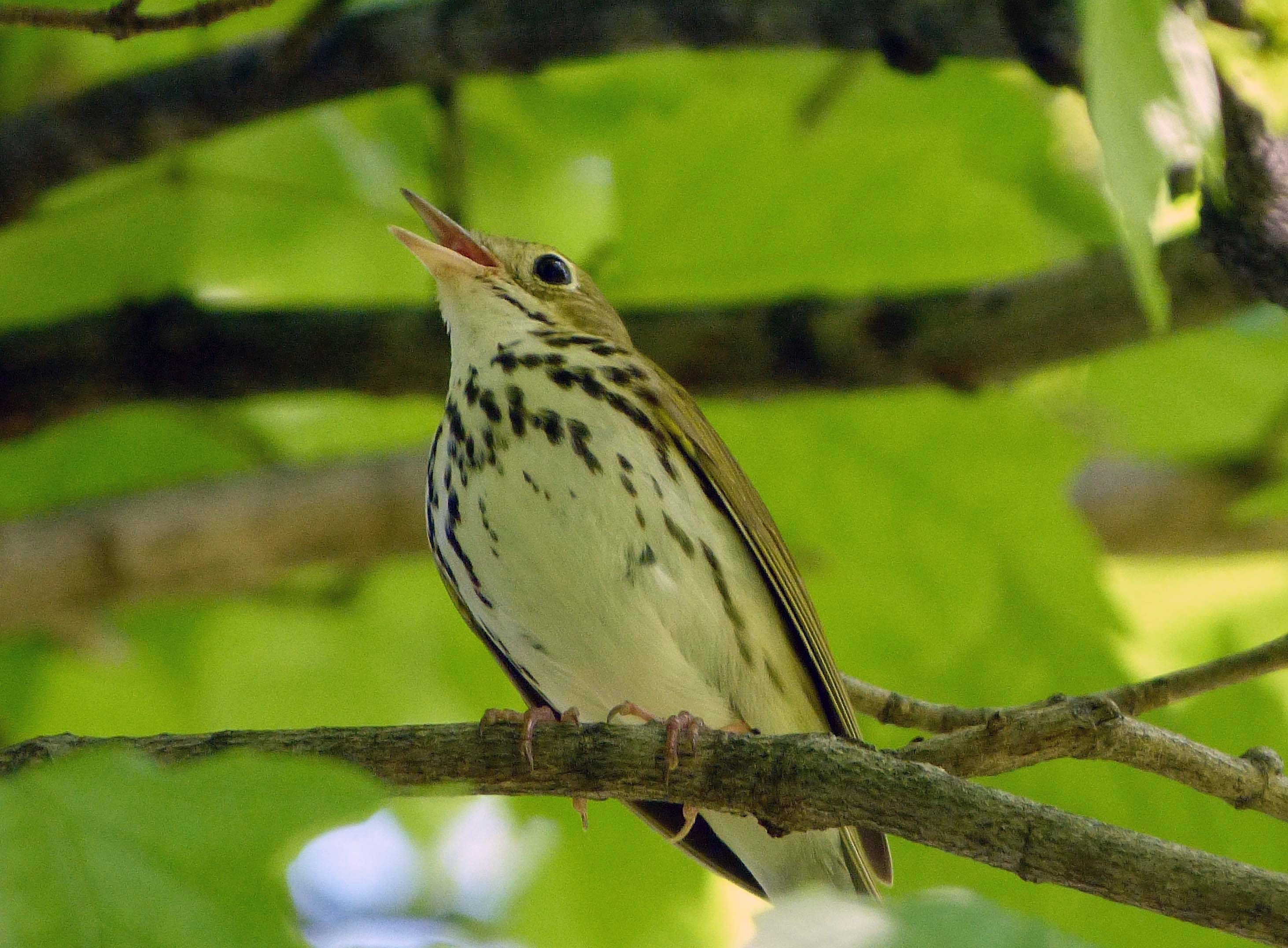 Ovenbird. This warbler is most often on or near the ground, where it builds it’s covered oven-shaped nest. But it is hard to see; most often heard by the loud “teacher,teacher,teacher” song.