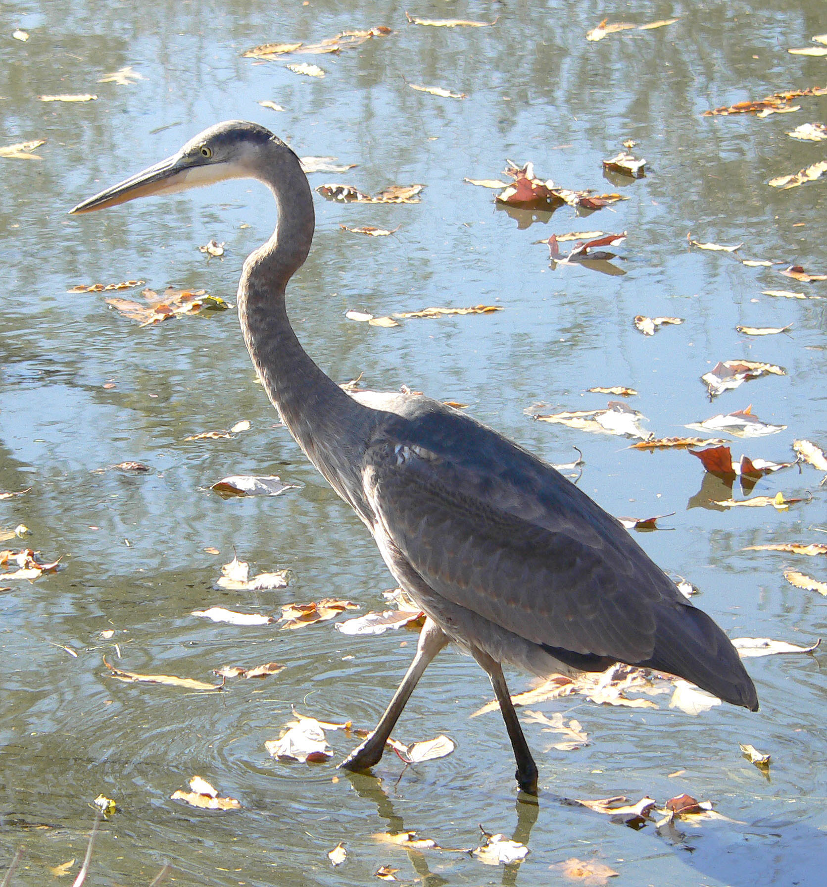 Two of the three man-made ponds at the end of Meadow Road are nearly dry, but there was a Great Blue Heron feasting on the concentration of fish in the dwindling pool.