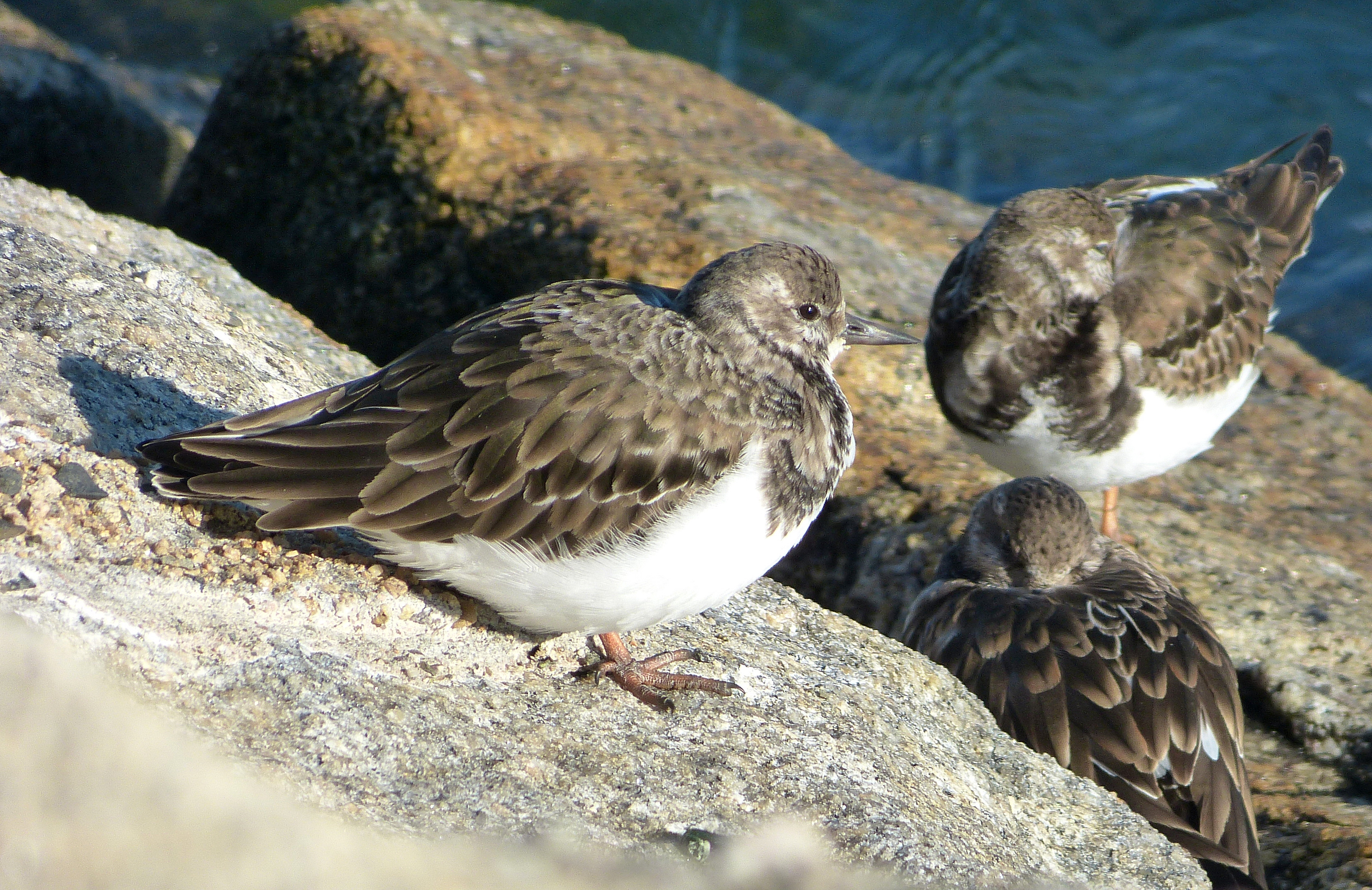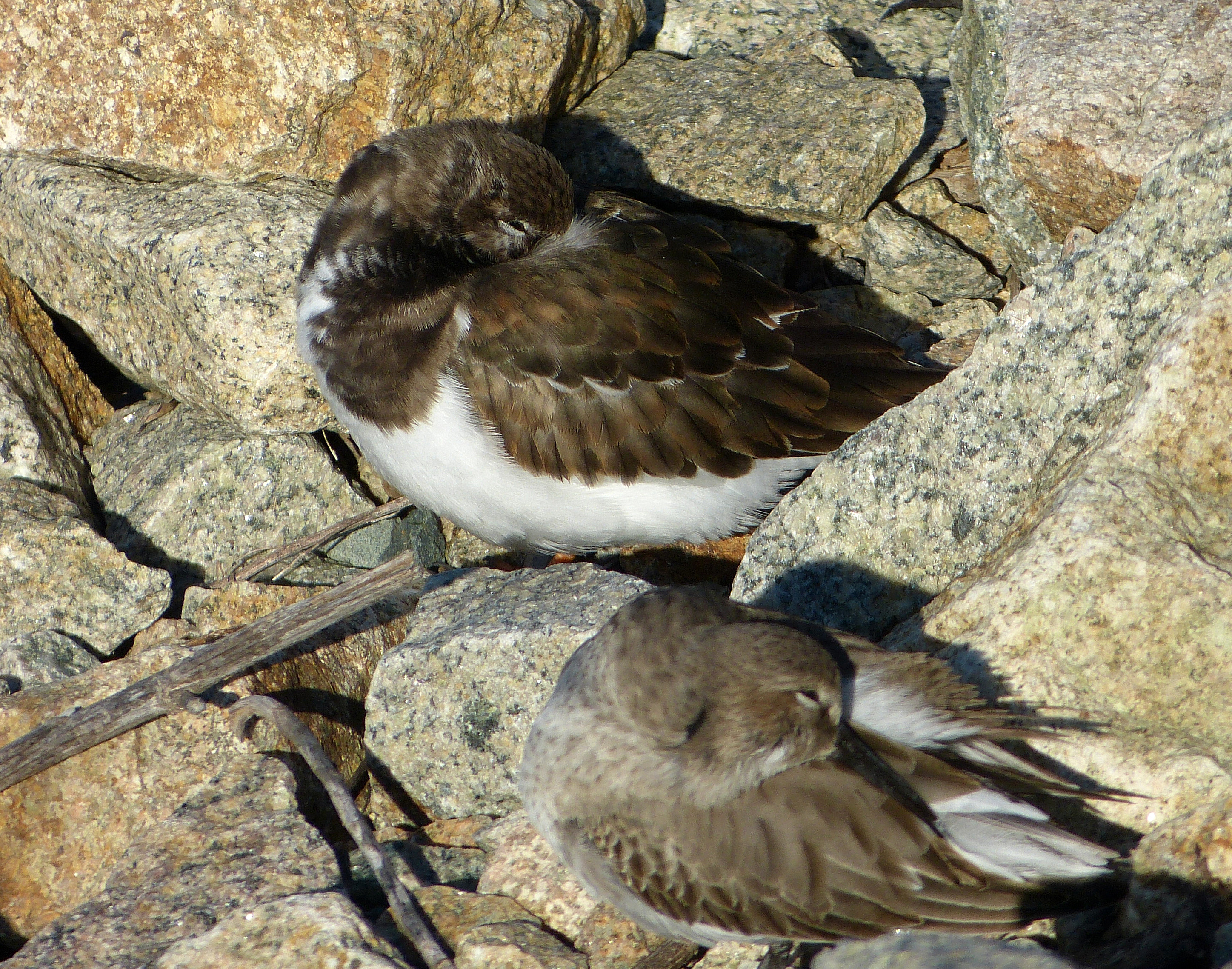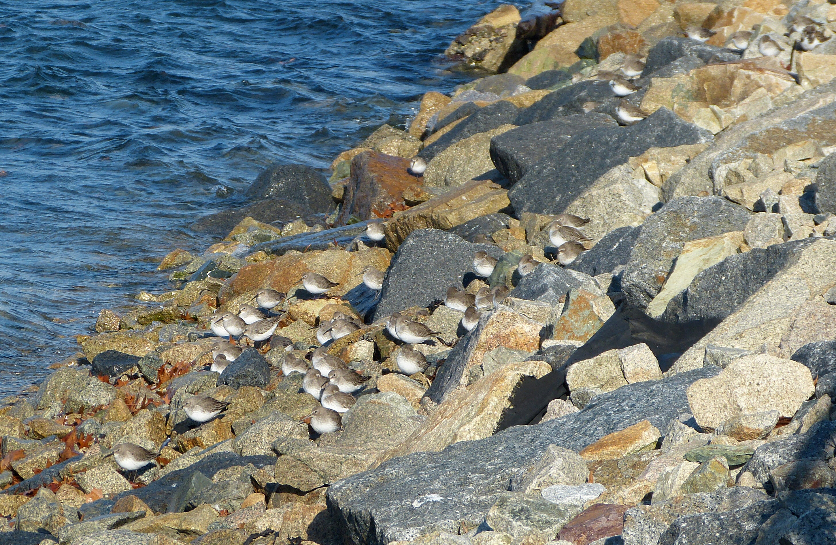 I ran into another birder coming from the opposite direction and we compared notes. She had seen some waterfowl but no shorebirds, so I told her where to look for the Turnstones. As I moved on I glanced at the rocks on the windier bay side and Bingo: