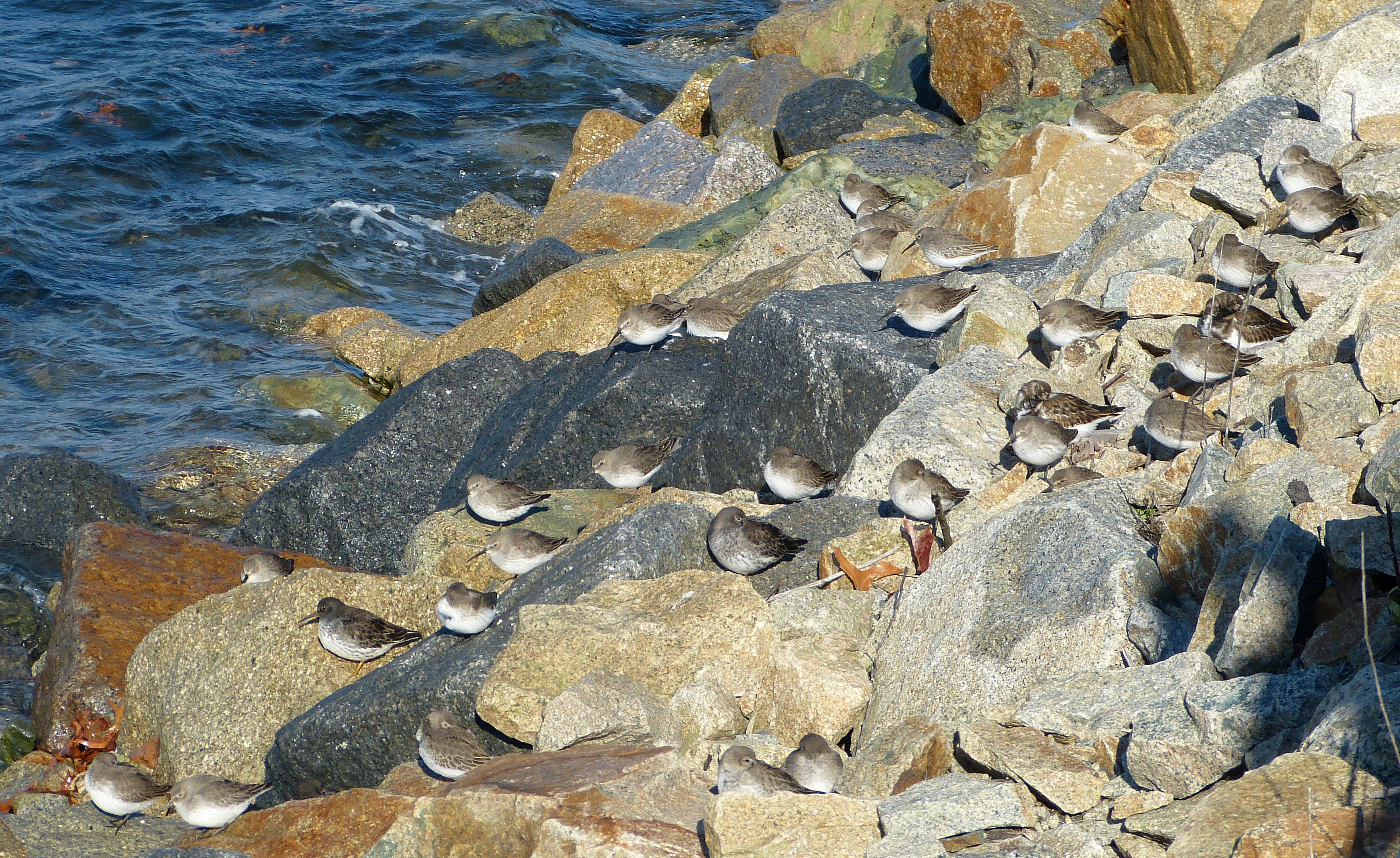 And here is a close-up of the least common species present, Purple Sandpiper: