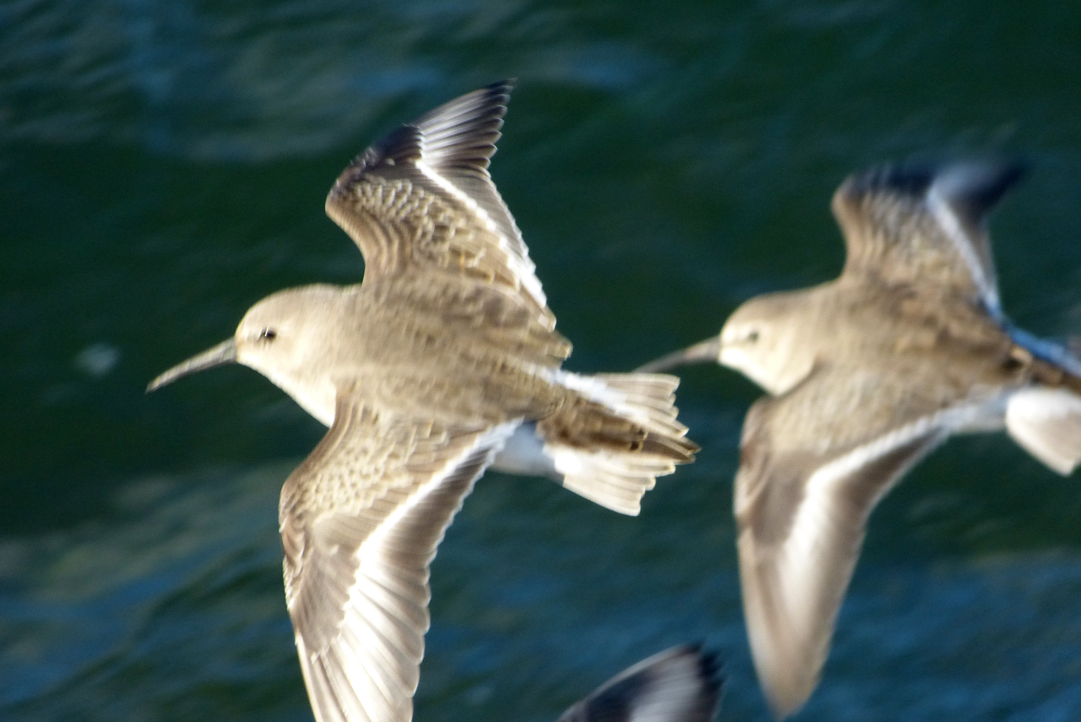 At one point many of the Dunlins took flight, but were too close to capture other than in this blurry image.