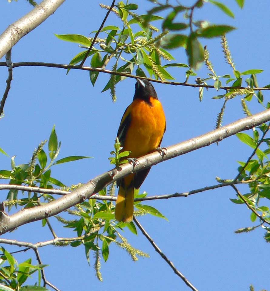 This morning 37 birders of all stripes joined me for a two hour early spring walk in the Arnold Arboretum. It was cloudy but otherwise perfect and we had some good birds and a lot of fun. The highlight of the walk was watching the newly arrived Baltimore Orioles jockeying for territory. At one point three males were standing off against one another, giving memorable looks.