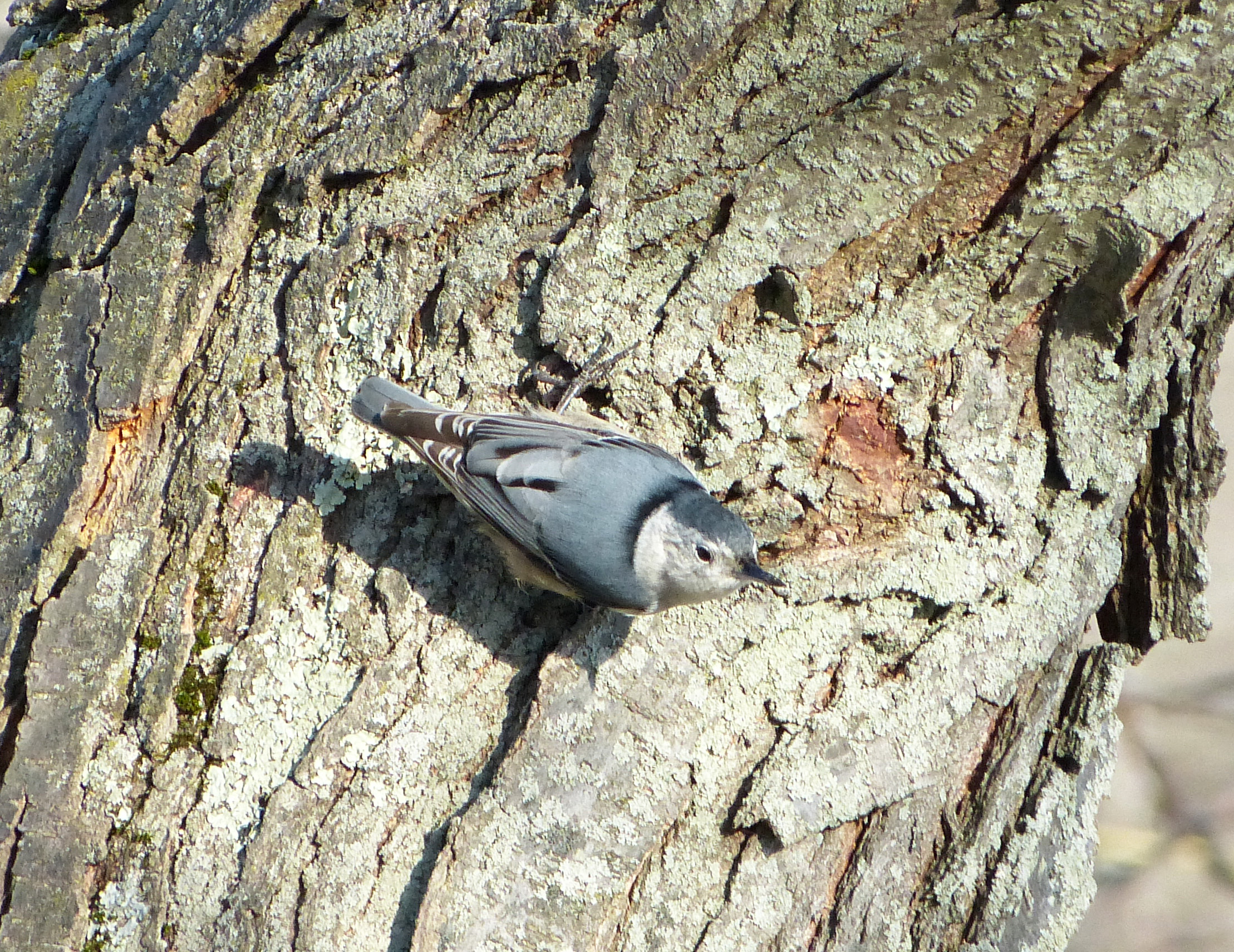 White-breasted Nuthatch in characteristic location on a tree trunk