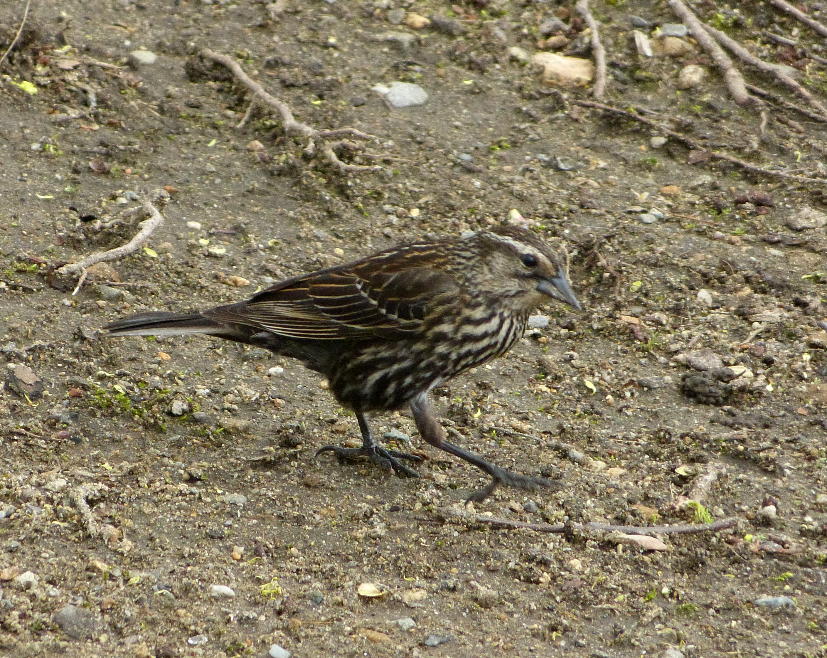 Red-winged Blackbirds were everywhere, the males showing off their red and yellow epaulettes. Many in the group were surprised at the strongly dimorphic (gender different) coloration of the recently arrived females: