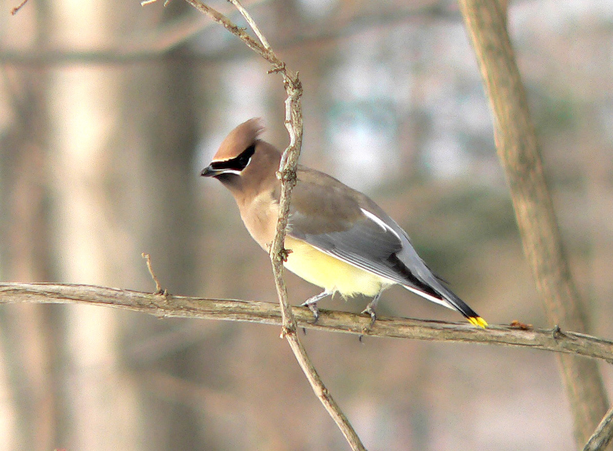 Early on someone spotted a couple of Cedar Waxwings but they flew off before others could get on them. A bit later a large flock came by and then everyone got to see these formally attired birds: