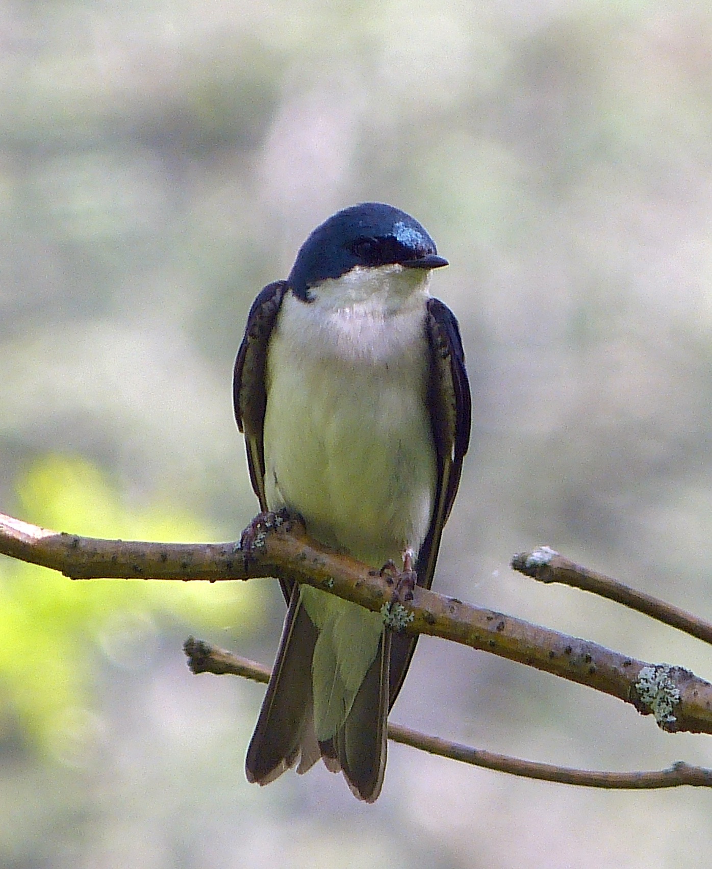 The male Tree Swallow has a white breast and belly contrasting with its blue wings and a shorter notched tail