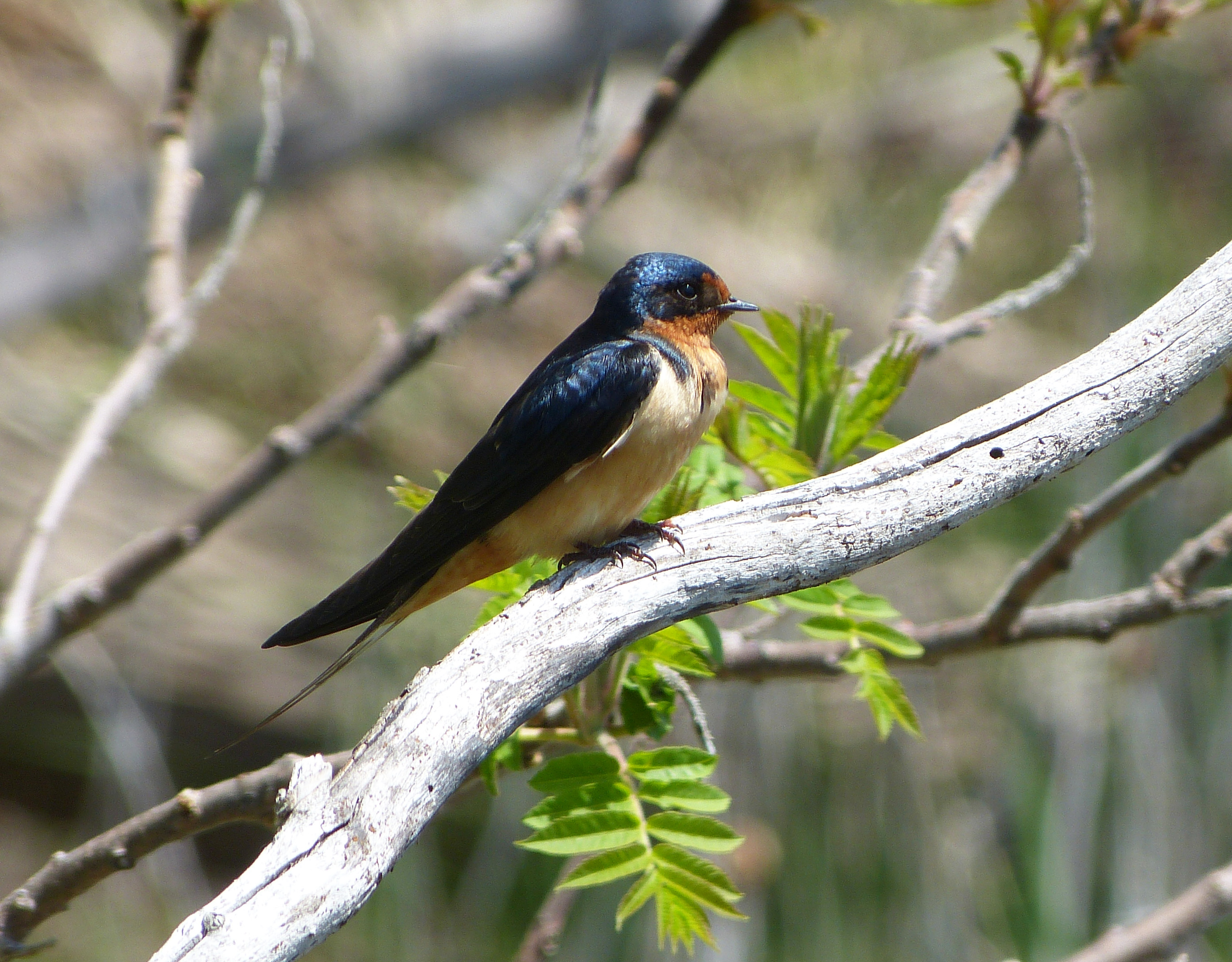 As we looked across Leverett Pond there were a number of swallows flying back and forth just above the water hunting insects. Most were Tree Swallows but a keen eyed birder spotted one with an orange breast- a Barn Swallow!
