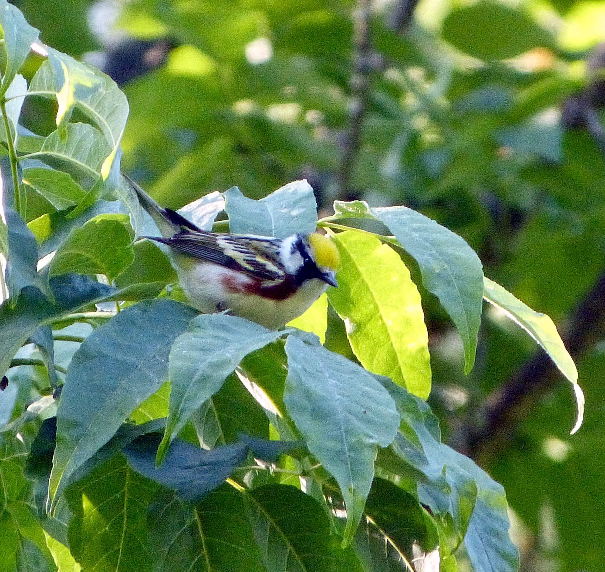 Chestnut-sided Warbler. Note the yellow crown, black face mask and bold chestnut flanks in this lovely male