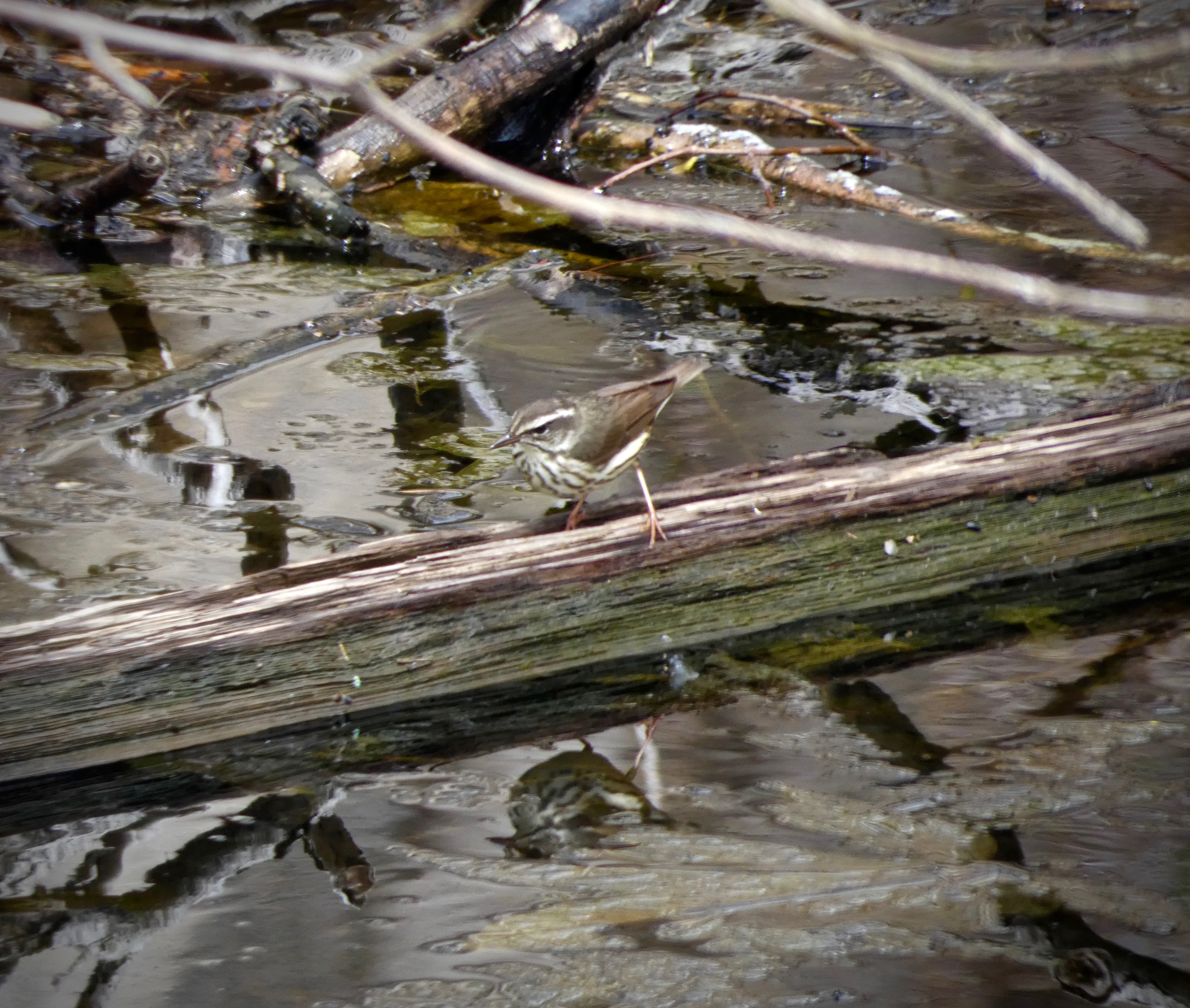 When trying to make a big list in a time frame one always thinks of what they missed. I didn’t get either of the waterthrushes that can be seen here, although I had both of them in the Arboretum in the last few weeks. Here is an image of the less common one, the Louisiana Waterthrush: