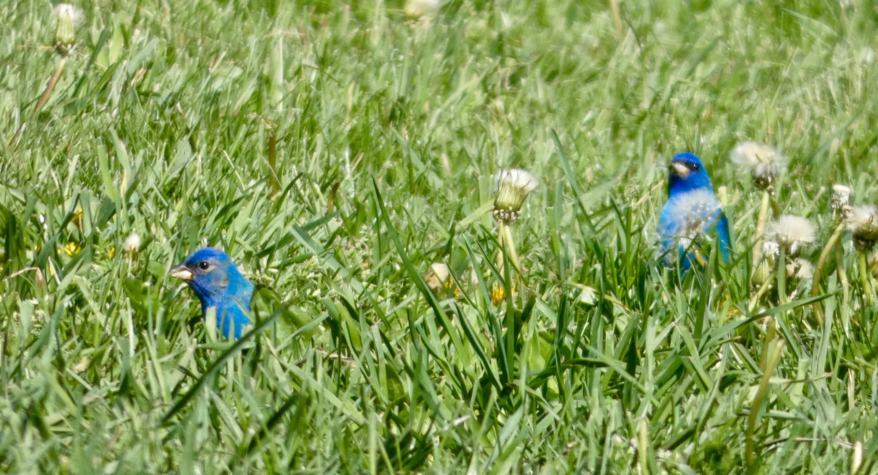 And the day before the B-A-T started I had four Indigo Buntings on the grass at the top of Bussey Hill! I looked for them on Saturday to no avail. Here is a shot I got of two of them on Thursday: